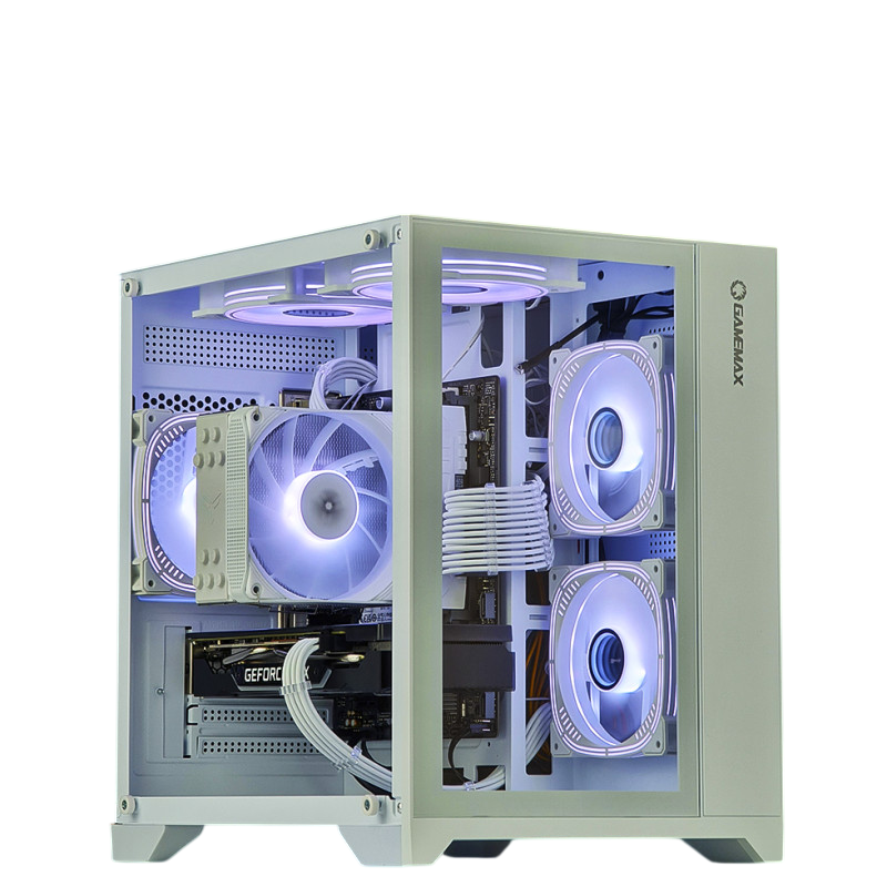 GameMax Infinity Mini White — корпус у білому виконанні з продуманою вентиляцією, що забезпечує ефективну циркуляцію повітря та підтримання оптимальної температури внутрішніх компонентів.