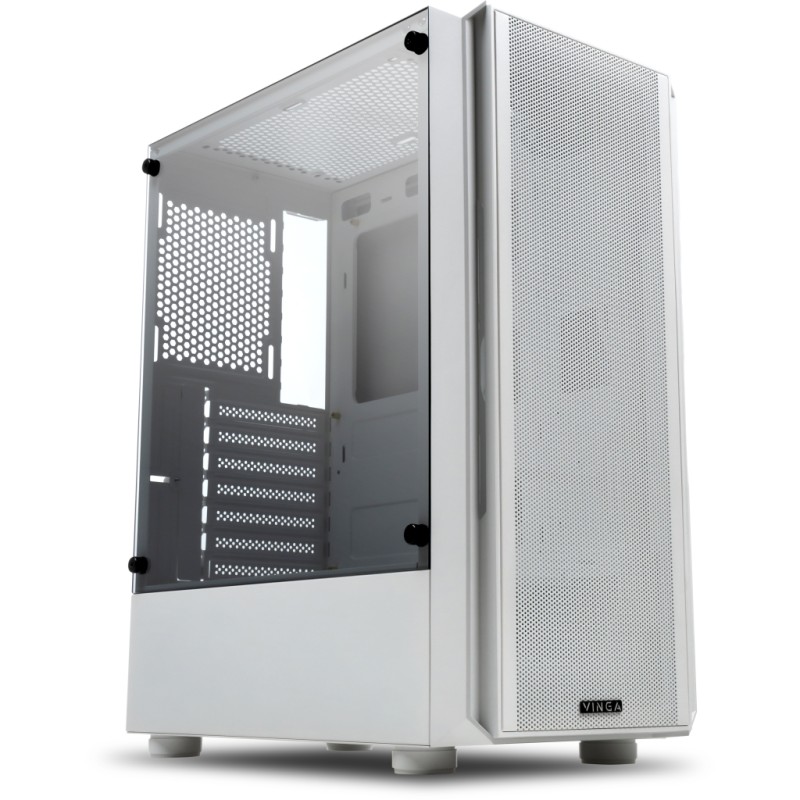 Корпус Vinga Cloud дозволить сконструювати непоганий геймерський комп'ютер: система вентиляції з вентиляційними гратами забезпечує нормальний температурний режим навіть при повному завантаженні. У корпусу є бічній панелі з загартованого скла - вона прозора, тому користувач може побачити, як працює «начинка» корпусу. Місце для блоку живлення знаходиться на дні корпусу, це допомагає погасити вібрацію і зробити рівень шуму нижче навіть при повному навантаженні. На корпусі розташовані кнопки управління живленням і завантаженням системи, а також входи для навушників, USB-порти і входи для мікрофона. Максимально допустимий розмір карт для установки - до 305 мм, максимально прийнятна висота кулера - 160 мм.