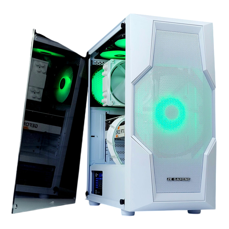 2E Gaming Turbo White — корпус в светлом исполнении с продуманной вентиляцией, обеспечивающий эффективную циркуляцию воздуха и поддержание оптимальной температуры внутренних компонентов.
